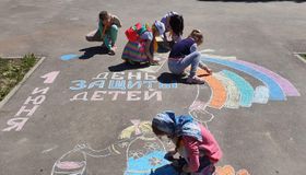 Работа кружка: рисунок на асфальте к Дню России